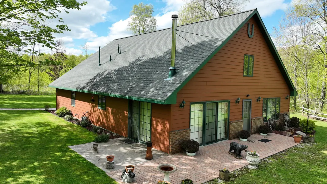 This fabulous vacation home is located amidst a beautiful stand of mature hardwoods behind a gate that gives tremendous privacy year-round. The house was designed to accommodate a good-sized family with two bedrooms downstairs and a very spacious bedroom in the loft. A master bath is also found in the loft. A comfortable feel is provided throughout the entire home; the open concept works extremely well. The wood-burning fireplace is gorgeous, the kitchen cabinetry is beautiful, and the large windows offer a wonderful view of the grounds. As you walk outside, you are immediately impressed by a welcoming feel; the path almost pulls you toward the firepit. Three outbuildings provide tremendous storage space for your equipment or your toys. The hunting on this property has been very good and will include deer, bear, grouse, and certainly turkeys. Walking through the woods might beg you to st...