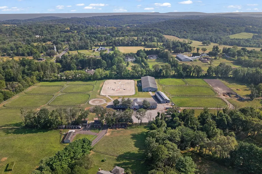 Currently the NJ home of Emil Spadone's Redfield Farm, Fieldsteps Farm is a professionally-designed facility with a 26-stall main barn, additional stand-alone shed stalls with turnout, outdoor arena, 80x200 indoor arena with premium footing and LED lighting, exercise walker, roundpen/lungeing arena, clear-span pole barn (currently used for temporary overflow stabling), fenced pastures, and direct access to the Tewksbury Trail system with the horse-friendly 180-acre Christie Hoffman Farm Park nearby. The main barn also features a lounge area with full bathroom, six wash stalls with hot/cold water (two with heat lamps), two tack rooms, a feed room, laundry/storage room, a second-floor office with dedicated half bath, and hayloft with a bale capacity. The residence is part of an established subdivision community of similar style homes and while it overlooks the equestrian facilities, it has separate driveway access from the stables, maintaining a comfortable degree of separation/privacy between the two elements of the property. 50 minutes from both NYC and Lambertville/New Hope and near the border of Long Valley and Chester, Fieldsteps Farm combines the rural beauty of its location in an equestrian-friendly, upscale community with the unmatched convenience of proximity to major highways, Newark Airport, and Tewksbury's top-rated schools.