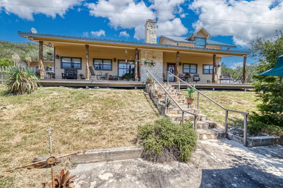 This beautiful 3-bedroom, 3-bath modern residence sits on a serene 7-acre unrestricted wooded tract just 1.4 miles from Andys on the River in Concan. The home offers a spacious living area with a wood-burning fireplace, two generously sized bedrooms with private baths downstairs, and a third bedroom with its own bath located upstairs. Step outside to enjoy a large covered porch overlooking a peaceful hillside where you'll find an open patio with a firepit and a nearby goldfish pondperfect for relaxing or entertaining. Behind the house, a detached storage building offers additional space and could easily be converted into a bunk room for guests. The natural scenery is absolutely stunning, and the stillness of the surroundings is truly calming. Hunting is permitted on the property, making it ideal for outdoor enthusiasts. Whether you're seeking a quiet getaway or a home with plenty of room to roam, this one checks all the boxes. Properties like this are in high demand and hard to come bydont miss your chance to own a slice of Hill Country paradise! Priced to sell at $425,000.