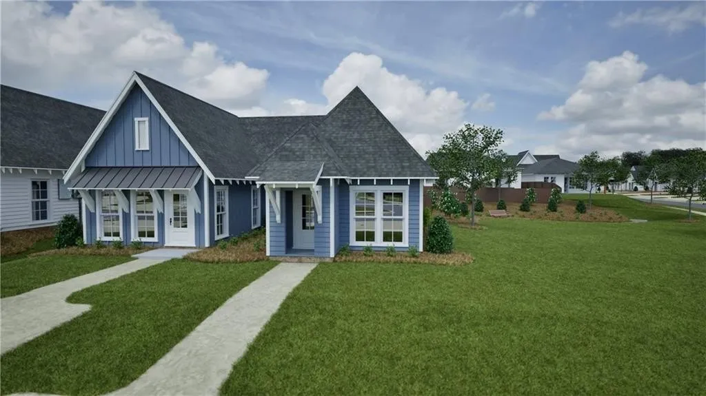 Located next to green space! This presale home has a six month build timeframe. The Duette 3D is a two bedroom, two bathroom, 1183 square foot home. As you enter into the home, you enter into the living room that features large windows and vaulted ceilings. The living room leads to the open concept dining room and kitchen that features custom cabinets and a large center island. As you make your way to the back of the home, you will find the guest bedroom and guest bathroom and laundry room. The owners retreat rests on the back of the home and features an en suite bathroom and large walk-in closet as well as access to the back porch and outdoor storage closet.