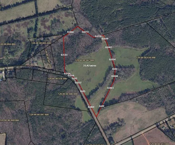 This 25-acre tract is a portion of a larger 75-acre tract, with an additional 40 acres of timberland located across Prospector Dr to the West.