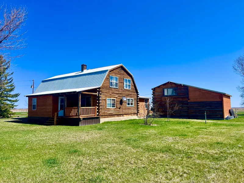 A log-style residence sits on the peaceful plains of central Montana, where they converge with the rugged Rocky Mountain Front. This immaculate home offers breathtaking views of the snowcapped mountains, visible from its porches and expansive windows. Boasting three bedrooms and three bathrooms, the cabin features an open main floor designed around a charming wood stove. Spanning 1,764 square feet on a 2-acre plot, the property includes a detached garage and a historic cabin with potential for renovation, ideal for use as a vacation rental or for historical preservation. Enclosed by a perimeter fence, the land invites residents to bring their horses, pets, or other animals, embracing a tranquil rural lifestyle in Montana. For those with an adventurous spirit, the Teton River flows just south of the property, while numerous reservoirs and lakes in proximity offer opportunities for fishing and boating. The majestic Bob Marshall Wilderness envelops the Rocky Mountain Front, providing a haven of unspoiled wilderness. Whether seeking a memorable hunting experience or scenic drives along gravel backroads, this property offers a gateway to a life of natural splendor and outdoor pursuits.