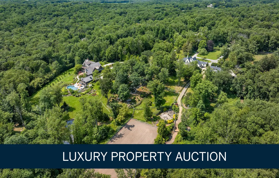 Cinematic equestrian estate and family compound on 16+ acres with three residential structures providing a total of 11 bedrooms and 13 bathrooms in backcountry Greenwich, Connecticut. Enter through custom 20 foot tall wrought iron gates that meander down the drive to the handsome shingle-style main residence perfectly nestled on the private park-like property. Completely renovated in 2023, the main residence features an adjoining one bedroom guest house/pool cabana alongside the infinity edge pool, an aviary, multiple paddocks, vineyards, vegetable gardens and fruit orchards.