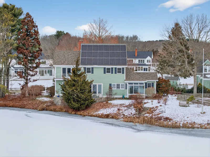 Direct waterfront on Quanaduck Pond. This 3 Bedroom, 4 Full Bath, 3,005 Sq Ft Contemporary Colonial is nestled on .35 acres of refined waterfront and includes energy efficient owned solar panels and wired for a generator. Enjoy a shared association dock and paddle/racquet court all in this coveted association and location. The exceptional floor plan features a spacious living room with a wood burning fireplace and direct access to a flagstone patio overlooking the water. The dining room also open to the patio and enjoys expansive pond and distant views, creating an ideal setting for indoor-outdoor entertaining. The generously sized kitchen includes a breakfast nook, greenhouse window, and is complemented by a rear entry foyer and dedicated laundry room. A private en-suite bedroom over the garage with a full bath offers flexible space for guests, a home office or studio. Upstairs in the m...