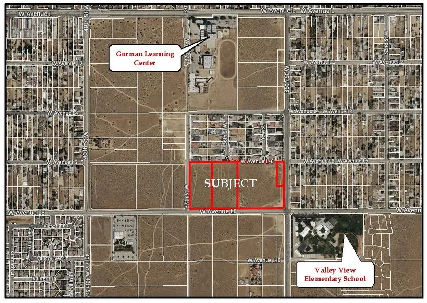 Northwest corner of W Avenue L-8 and 35th Street W; and northeast corner of W Avenue L-8 and 37th Street W, in the Quartz Hill area of the City of Lancaster, CA 93536. Great location with paved roads on three sides. Close to shopping, parks, schools and more! Previously approved (2006) as Tentative Tract No. 061915 for 33 single family residential lots. Biological Resources Report, Cultural Report, Environmental Study, Hydrology Report, Phase I and Sewer Study from 2005/06 available as part of Buyer’s Due Diligence investigations. Map is currently expired.