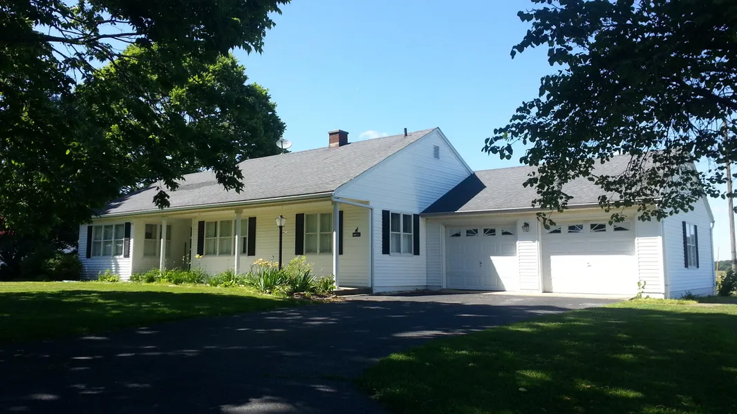 Spacious ranch style 3-4 bedrooms, 2 bathroom house over an unfinished basement. Hardwood and tile flooring. Large eat-in kitchen equipped with microwave, refrigerator, range and dishwasher and separate dining room with built-in cabinet. Washer/dryer hook-ups. Gas forced heat, corner fireplace and central air. Lots of windows with custom interior shutters. Vinyl siding, shingled roof, 2-car attached garage, blacktopped driveway, poured sidewalks, back deck, large level yard with mature trees and plank fencing.