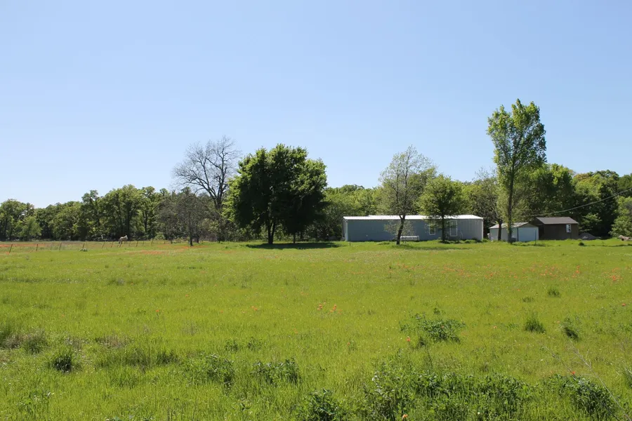 Very nice 2-2 mobile with add-on on 4.5 pretty acres. Add-on is on concrete slab and is complete on exterior with wall of windows, and unfinished interior. Mobile has large breakfast bar, and insulation in walls and foil under metal roof and is 840 sq ft with a 576 sq ft add-on. Has steel roof, 2 storage buildings, mostly pasture with wooded areas.