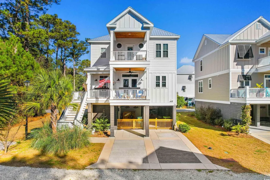 Welcome to this exquisite 3-bedroom, 2.5-bath raised beach home, located in the highly sought-after community of Marshland Park in Pawleys Island. With gorgeous details throughout, this home offers a perfect blend of comfort, style, and functionality—ideal for both everyday living and entertaining. Best of all, this beautiful home is being sold furnished, allowing you to move right in and start enjoying coastal living from day one! The open-concept main living space features a spacious and inviting floor plan that seamlessly connects the kitchen, dining, and living areas. The chef-inspired kitchen is a dream, complete with stainless steel appliances, a large center island, breakfast bar, and beautifully contrasting cabinetry. It opens into the cozy living room, where you’ll find a charming fireplace framed by custom built-ins, offering both warmth and extra storage. The living room flows out onto a private balcony—the perfect spot for sipping morning coffee or enjoying evening sunsets. The dedicated dining space offers plenty of room for hosting family and friends, making it ideal for gatherings. Upstairs, the primary suite is a true retreat, featuring a private balcony, a spacious bedroom, and an ensuite bath with an extended shower showcasing custom tilework and his-and-hers vanities. The two additional bedrooms share a beautifully appointed full bath with a dual-sink vanity and tub/shower combo. This home is thoughtfully designed for convenience, featuring built-in cabinetry in the laundry room for additional storage and organization. Every room showcases high-end finishes and thoughtful details that elevate the space and create a warm, welcoming atmosphere. Outside, the under-home area provides an incredible space for outdoor living—perfect for relaxing, entertaining, or storing beach gear. The additional storage area beneath the home keeps seasonal items neatly tucked away. Situated in a prime Pawleys Island location, you’ll be just moments from boutique shops, local restaurants, and, of course, the beach. This furnished, meticulously maintained home offers the perfect combination of luxury, comfort, and coastal charm—truly a slice of paradise in Marshland Park!