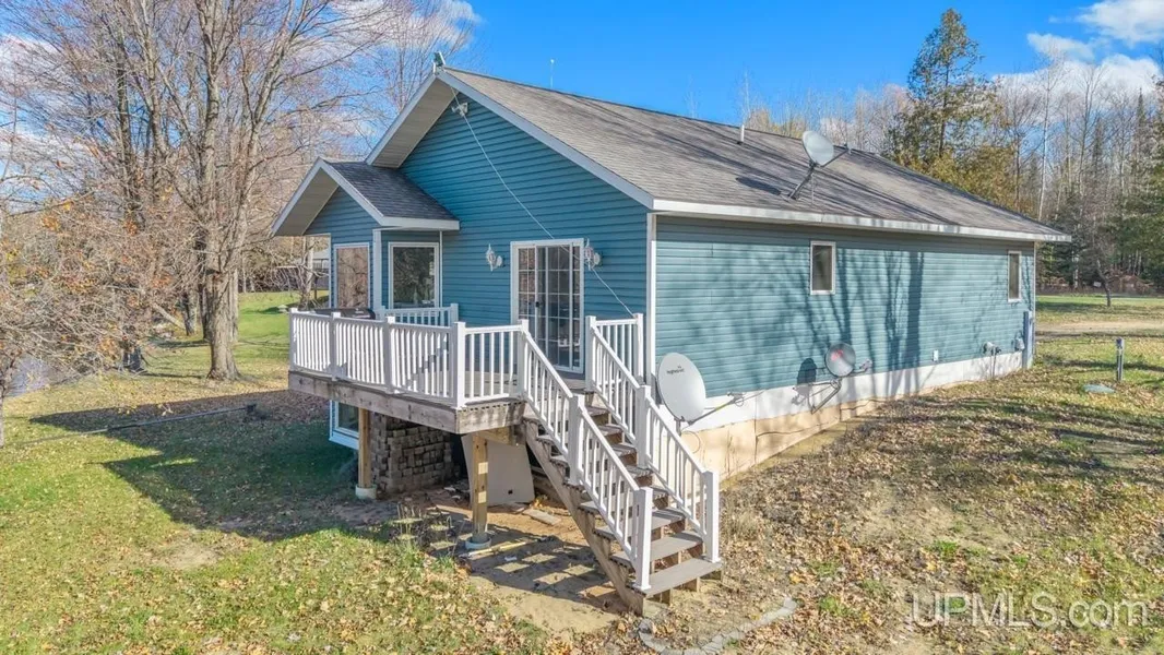 This riverfront home offers 100 feet of frontage along a scenic bend of the Ford River. Step inside to a spacious entryway that leads to two good-sized bedrooms, one with a large walk-in closet, and a full main-floor bathroom. The heart of the home is the open-concept kitchen, dining, and living room, all framed by cathedral ceilings and river views that will take your breath away. Convenient main-floor laundry is another plus. The full basement is ready for your finishing touches, with exterior walls already completed and a roughed-in bathroom in place. This is one of the nicest lots on this stretch of the Ford River!