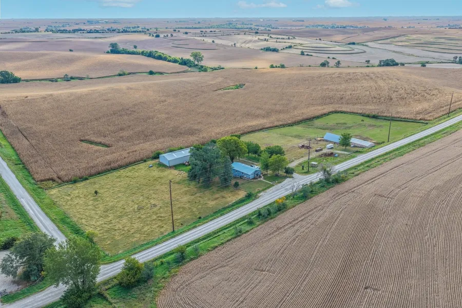 Discover peaceful country life, while only being a mile to town! This farmstead is perfectly set up for your livestock needs, the 6+ acres is fully fenced in,with several lots and cross fencing to rotate pastures. Multiple outbuildings for shelter and a 38x88 machine shed for all your equipment. While the solar panels on the roof supply power to the farm, and the peace of mind not having a power bill as prices keep rising. The home offers complete main floor living with 2 bedrooms, Eat-In Kitchen with pantry, spacious living room featuring vaulted ceilings, and patio door out to a deck that over looks the farm, main floor laundry, and full bath. The basement just needs finishing touches to complete the family and 3rd bedroom, with a walk-out to the 2 car garage that could be finished!