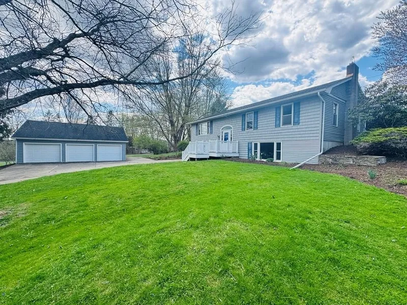 NOVEMBER GOLD TAG EVENT!! Price reduced for November ONLY! Spring into your new home! This 3-bedroom, 2-bath split-level sits on 1.78 acres and features a heated 3-car garage. Inside, enjoy a spacious living room flooded with natural light, hardwood floors throughout the main level, and a kitchen with Corian countertops, oak cabinets, a breakfast bar, and built-in pantry. Both the dining room and kitchen open to a composite deck—perfect for summer evenings. The lower level offers a cozy family room, full bath, laundry area, and a game room complete with a bar for entertaining. With an expansive yard, a welcoming neighborhood, and a location that feels peaceful yet close to town, this home truly has it all!
