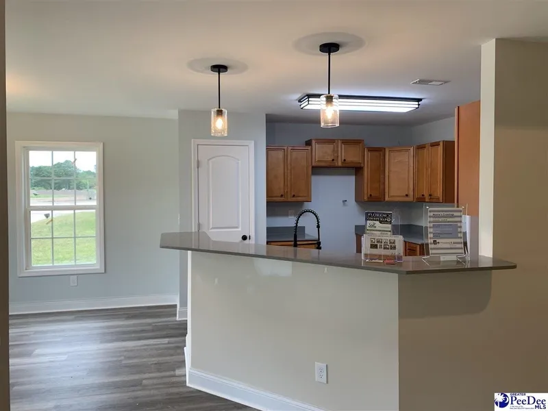 **Spacious, No-HOA Home on .62 Acre Lot with Upgraded Features** This consumer-favorite floor plan offers an open-concept layout with a tray ceiling in the living area, creating a bright and airy atmosphere. Situated on a generous .62-acre lot with **no HOA fees**, this home combines functionality, style, and privacy. **Interior Highlights:** - **Luxury Vinyl Plank flooring** throughout for durability and elegance - **Upgraded lighting package** and ceiling fans in all bedrooms and living area - **Quartz countertops** in kitchen and baths for a sleek, modern finish - **Pot filler faucet** over the smooth-top range and a pantry for added convenience - **Stainless steel appliances** including microwave, dishwasher, and range **Bedrooms & Baths:** - **Owner’s suite** features a calming retreat with: - Seated walk-in shower insert - Dual walk-in closets - Linen closet - Dual vanities with quartz countertops - **Bedroom #3** doubles as a home office with a walk-in closet - **Bedroom #2** includes a spacious double closet **Dining & Living Spaces:** - Large dining nook with double windows for natural light - Single door with built-in blinds leads to the **covered patio** - Foyer opens seamlessly into the living area and kitchen **Storage & Utility:** - Double linen/storage closet in the laundry room, conveniently located off the kitchen - Additional storage closet in the garage for yard tools **Exterior Features:** - Sod installed in front, sides, and around rear patios - Remainder of lot is **graded and seeded** - Gutters installed Moore's Crossings is located 3.3 miles from Francis Marion University. 6.2 miles from the intersection of Freedom Blvd & Palmetto Street. 10.5 miles from I-95 exit 170 (327) - Amazon newest location. 8 miles from the AESC electric battery plant on 327. McGowan law Firm represents seller in all transactions. EM held by McGowan law firm. Convenient location to Downtown entertainment & restaurants, hospitals, medical mall, FMU Athletic complex & FMU campus, Pee Dee commerce City East & West, Senior Center, Freedom Park & shopping. Moore's Crossings is a new neighborhood consisting of approximately 20 homes all sitting on .62 acre lots. Limited restriction, BUT NO HOA Fees.