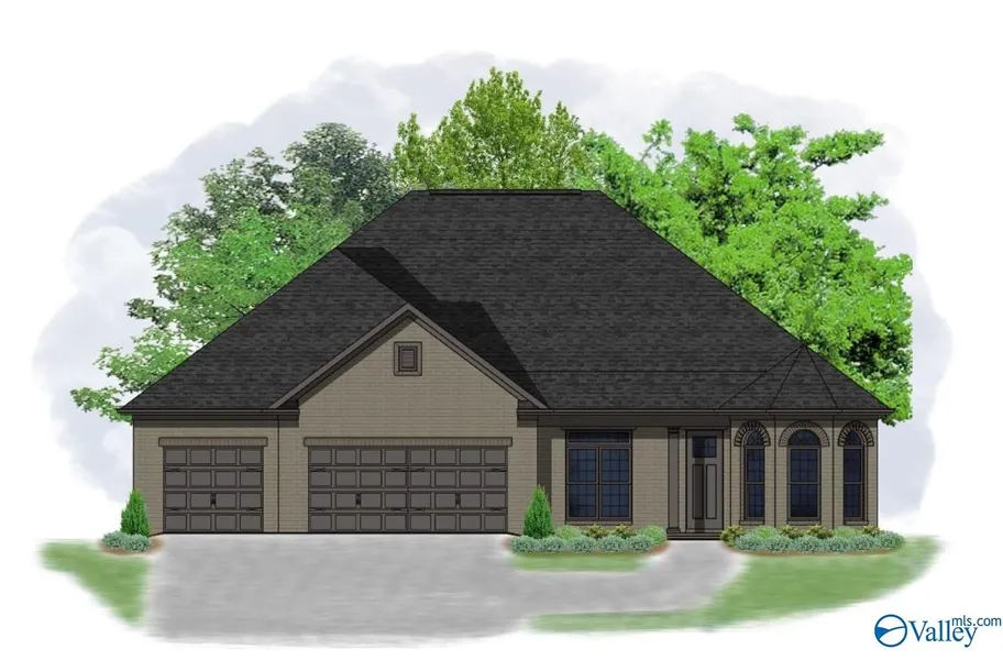 Under Construction-The Mitzie is a 2,808 SF ranch plan featuring 4 bedrooms, 3 baths, and a 3-car garage. The master suite offers a trey ceiling, hardwood floors, his-and-hers walk-in closets, and a glamour bath with a freestanding tub and tiled shower. All bedrooms have walk-in closets. The formal dining room adds elegance, while the open great room with gas fireplace and breakfast area creates a warm gathering space. The kitchen is perfect for entertaining with double ovens, a 36" gas cooktop, and large island with quartz counters. The laundry room off the garage includes a mud bench and utility sink for added convenience. A thoughtful, spacious layout for comfortable living.