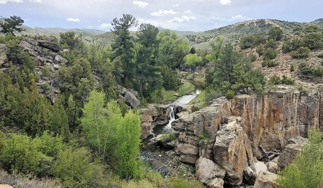 As one of the most diverse ranches on the market today, the Ranch at Bates Creek provides exceptional sporting opportunities with excellent privacy. Only 45 minutes from Casper, the Ranch is easily accessible yet provides a distinct quality of seclusion. Perhaps it is the water rushing over the water fall into the pool below or catching large trout in the deep pools of Bates Creek. Somehow, you get lost in time and forget the cares of life on the outside world. With 3,138 total acres, including 1,166 deeded, 1,506 BLM lease and 465 State lease, you have plenty of room to move about hunting, fishing, hiking, horn hunting and rock climbing. In addition to the deeded and leased ground, there is access to thousands of additional acres of adjoining BLM and State land. A restored one bedroom bunkhouse, an insulated Morton building, small workshop, horse barn, and corrals provide modest yet functional improvements. The lush river bottom attracts a variety of wildlife including elk, mule deer, antelope, mountain lion, sage grouse and turkey.