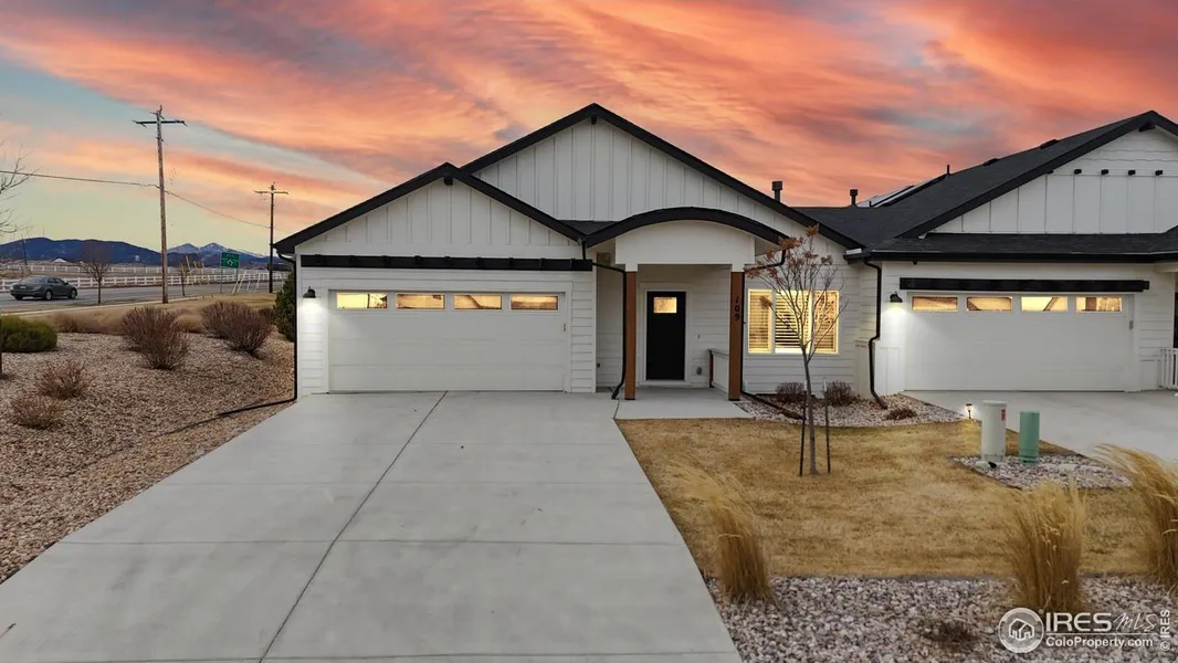 109 Taryn Court in Loveland, Colorado is a recently built, well-appointed townhome in the desirable Mariana Butte / Mountain Gate area that thoughtfully blends contemporary comfort with low-maintenance living. Constructed in 2021, this property features three bedrooms and two baths in a layout designed for both everyday comfort and effortless entertaining, with an open-feel living space that flows seamlessly into a well-sized kitchen and dining area. Ideal for relaxed family life or casual gatherings with friends. Vaulted ceilings elevate the main living areas, infusing the interior with natural light and a sense of spaciousness, while quality finishes throughout, including wide-plank flooring and central air conditioning, enhance everyday comfort. The primary suite and secondary bedrooms are positioned for privacy and convenience, supported by well-configured bath spaces and ample stora...