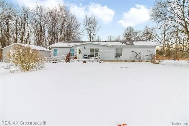 Carefully placed on a private1.3 Acre Lot. Offering Three bedrooms with hardwood flooring, Two custom built tiled bathrooms with a best walk-in shower. Family room has hardwood floors, fireplace and large windows to bring in natural sunlight. The large living room opens up into the dining room which features French doors that open to a large deck with gazebo and attached swimming pool. All appliances will stay including washing machine, clothes dryer, dishwasher, stove, and refrigerator. This is a must see home to appreciate all of its care and pride of ownership. Large front trex deck porch with big rear deck. There is a detached two car garage/ pole barn with plenty of room for hobbies and storage.