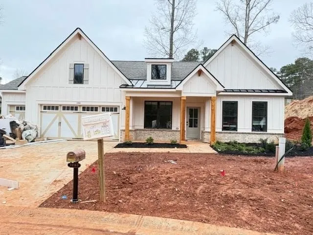 All-new Addison A plan in the Club Cottages by My Home Communities offers easy one-level living with a smart split-bedroom layout featuring three bedrooms and two baths on the main level. The upper level adds a fourth bedroom, full bath, and loft—perfect for guests, office, or flex space. A golf cart garage gets you on the course in minutes. Well-chosen upgrades include oak stairs, a 48-inch gas range, water softener, enhanced trim details, steel tub with tile surround, 2-inch blinds, zero-entry primary shower, gas-start wood-burning fireplace, Level 2 quartz throughout, and full irrigation. Exceptional finishes at this price point. Enjoy the relaxed luxury lifestyle of Harbor Club with golf, lake, marina, restaurant, fitness center, pickleball, tennis, pool, and an active social calendar. Home ready in approximately 30 days