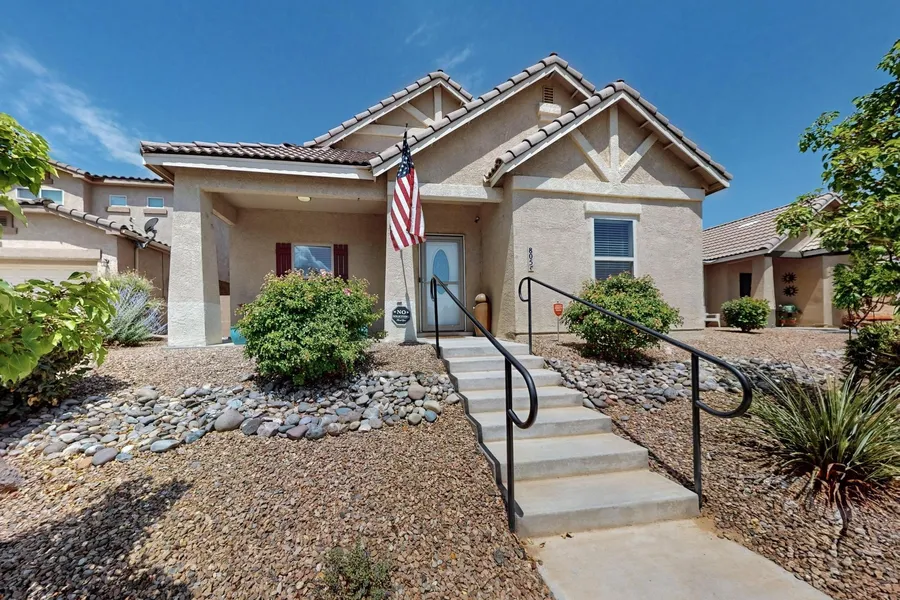 Welcome to this charming single-family home nestled in the Santiago community offering comfortable and efficient living space, ideal for those seeking a low maintenance lifestyle. This homes features. 2 bedrooms, 2 bathrooms, 1 car garage, newer TPO and tile roof, newer flooring, beautiful newer stainless-steel appliances, granite counter tops in the kitchen that opens to the dining and great room that boasts lots of light for entertaining. The primary suite has a large walk-in shower and larger closet. The secondary bedroom is great for guests. The flooring is newer throughout. The backyard offers a covered patio, storage shed and a waterfall for you to enjoy and relax on a beautiful summer evening. The landscaping in the front is maintained by HOA. Call today to make this home yours.