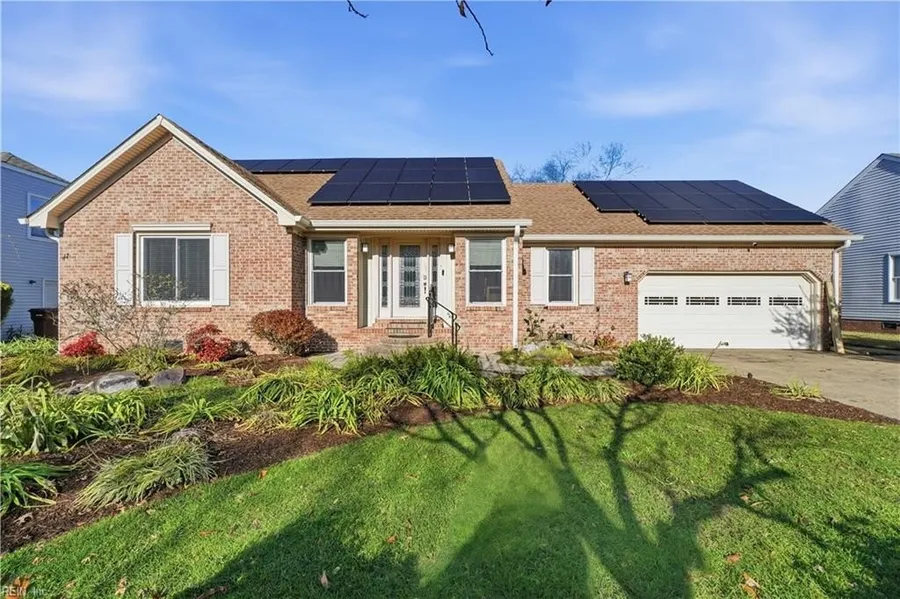 Elegant ranch home located on lake in sought after Hunningdon Lakes. Lovingly cared for, updated. Unique, welcoming entry through lovely lead glass front door. Opens to spacious great room,new gas log. Great room open to kitchen with Bay window in kitchen overlooking lake. Hardwood floors in Primary. Beautiful Corian counters, large bar and beautiful wood cabinets; all appliances convey even washer/dryer. Laundry, pantry just off the kitchen. Huge frog, 4th br, separate heat/air unit. Custom chair rail in dining room, great room. Nice-sized Primary has raised ceiling for airy, spacious feel, access to backyard deck. Updated PBA has dual sinks, granite counters and walk-in shower. 2 other bedrooms, hall bath first floor. Energy efficient features: solar panels, tankless hot water heater, new windows, 2025, encapsulated crawl space. Backyard wonderland! Deck new 12/25. Beautifully landscaped yard. New carpet famrm, frog, hall, 2 sm bedrms. New LVP entry/dining rm. New vinyl laundry rm