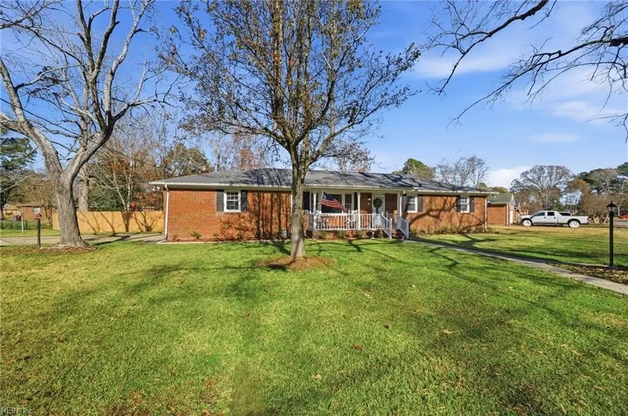 Beautiful brick ranch located in the highly desired Great Bridge area, situated on a large corner lot! This 3-bedroom, 2-bath home features original refinished hardwood floors that are in excellent condition, custom blinds throughout, & a spacious, versatile floor plan designed for everyday living & entertaining. Layout includes a formal living room, separate dining room, & a large family room complete with a fireplace. The kitchen offers tile flooring and backsplash that perfectly complement timeless white cabinetry and beautiful quartz countertops. Enjoy the cozy heated and cooled sunroom overlooking the huge fenced backyard, an inviting space perfect for relaxing, entertaining, or unwinding year-round. Backyard shed includes power and generous storage space. NO HOA fees & part of the Great Bridge school system. Sellers have preserved this home’s charm while keeping it well maintained...