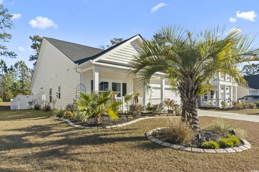 This better than new "St. Phillips" ranch in Arcadia is where resort living meets everyday convenience. Discover the effortless lifestyle you’ve been waiting for in the highly sought-after Arcadia community. This pristine "St. Phillips" 3-bed 2-bath model, built in 2023, offers the polished feel of new construction without the wait. Ideally situated on a premium lot, this single-story residence blends modern functionality with resort-style amenities, placing you minutes from everyday conveniences and the sandy shores of Myrtle Beach. Step inside to an airy, open-concept footprint designed for easy entertaining and relaxed living. The heart of the home features a spacious kitchen with gleaming granite countertops, upgraded lighting over a sprawling breakfast bar, and a pantry—perfect for the home chef. The flow continues seamlessly into a large living room with a fireplace and open dining area, anchored by durable, stylish flooring that makes cleaning a breeze. Retreat to the primary suite, a true sanctuary boasting a generous walk-in closet and a well-appointed en-suite bath with a walk-in shower. Outside, your leisure options are endless. Whether you are sipping coffee on your private covered porch with a paver patio surrounded by beautiful backyard landscapes and lighting or taking a short stroll to the world-class amenity center, every day feels like a vacation. Enjoy access to a sparkling community pool, pickleball courts, a fitness center, and a clubhouse that serves as the neighborhood's social hub. With a tankless water heater, and a smart home layout, this property delivers efficiency and comfort in equal measure. Additional upgrades and add-ons to the home include washer/dryer, security system, gutter system, privacy fence, garage storage rack and more! Schedule your showing today!