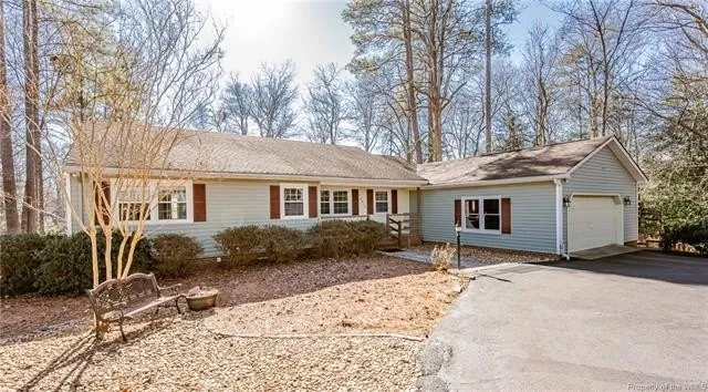 Welcome to single-floor living at 3419 S Hairpin Drive in the Five Lakes community of New Kent. Set on a private 1.58-acre wooded lot overlooking the 14th green of Brookwoods Golf Course, this home offers 3 bedrooms, 2 full baths, & 2,144 sq. ft. of living space. A formal living room with recessed lighting opens to a great room featuring a ceiling fan & gas FP. The family room flows into the open dining area & kitchen with granite countertops, breakfast bar island, custom cabinetry with built-in wine rack, pull-out spice rack, stainless steel appliances, induction cooktop with custom hood, & recessed lighting. The Florida room includes carpet, skylights, ceiling fan, & access to the deck. The primary bedroom features a walk-in closet & private bath with tile flooring, tub/shower, & heat lamp. Bedroom 2 has a walk-in closet & adjoins the hall bath; bedroom 3 includes a ceiling fan & carpet. Additional features include a laundry room with washer & dryer, 2-car attached garage, covered porch, circular driveway, shed, landscaped yard, custom patio, vinyl siding, thermal windows, & dimensional roof. No HOA. Convenient to I-64, VCU Emergency Care, dining, & wineries. Don’t miss this one!