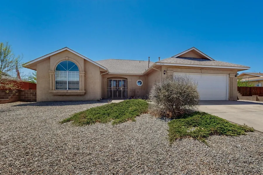 Welcome home! Located in a quiet and peaceful cul-de-sac in the desirable River's Edge neighborhood, this charming 3 bed, 2 bath home is well-maintained. Boasting a spacious 2 car garage, with ample storage space, 240 v outlet and backyard access! The home's interior is highlighted by an open floorplan featuring solid surface floors in all common areas - offering a sleek, modern look that is both stylish and easy to maintain. Enjoy year-round comfort with owned solar panels and central A/C which provide energy efficiency and savings on utility bills. The covered patio offers a perfect space for outdoor relaxation, whether you're hosting a gathering or simply unwinding after a long day.