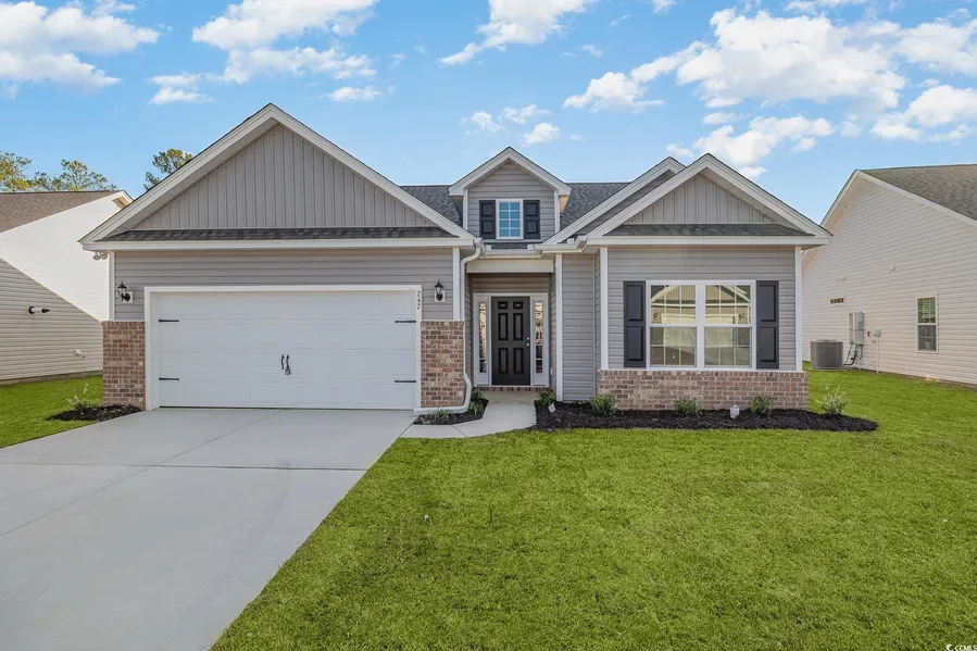 Home is under construction, scheduled to be completed in January. Photos are from a similar home. Golf cart to the beach from this beautiful Hatteras floor plan. Building lifestyles for over 40 years, we remain the premier home builder along the Grand Strand. We’re proud to be the 2021, 2022, 2023, and 2024 winners of both WMBF News' and The Sun News Best Home Builder award, 2023 and 2024 winners of the Myrtle Beach Herald's Best Residential Real Estate Developer award, and 2024 winners of The Horry Independent’s Best Residential Real Estate Developer and Best New Home Builder award. This Hatteras floor plan is very open with lots of natural light. Stainless appliances, marble-look quartz breakfast bar/counters, pendant lights over the island and subway tile backsplash. Abundant recessed lighting, double window in the adjacent dining area and double windows in the great room. The glass door in the great room leads to the covered rear porch and additional patio, with a fully-sodded backyard. All of the homes in Ocean Palms come standard with the luxury of natural gas (tankless water heater, gas heat, and gas range). The two car garage is completely trimmed and painted, with a wifi-enabled garage door opener, and floored attic storage space accessed by drop-down stairs. Ocean Palms is conveniently located near shopping, restaurants, schools, world class medical offices and hospitals, and is only a short golf cart ride to Surfside Beach's gorgeous beach and the beautiful Atlantic Ocean. Community pool and cabana.