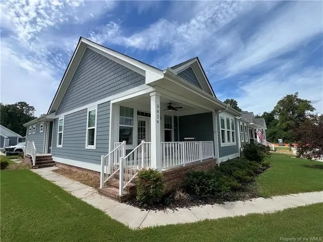 Discover refined comfort in this beautifully crafted, intelligently designed rancher featuring effortless one-level living. Here, your lifestyle goes to the next level. Don't miss the vaulted great room with lots of windows, just the right amount of natural light. The gourmet kitchen acts as the centerpiece of this space with an expansive granite island, double ovens, gas cooktop with downdraft exhaust, custom tile backsplash & sleek stainless steel appliances. Get away to your resort style primary bedroom which includes a beautiful bathroom with its dual shower heads with full glass, & dual vanities! Energy efficiency is provided by Solar Panels, 6" insulated walls & the HVAC system utilizes a recirculating heat system so no matter the season, you are covered. Outside enjoy your cozy front porch with guests. Parking is a breeze: 2 car garage & off street parking for 3 more vehicles, 2-3 more in the front means everyone has a space. Enjoy close proximity to everything Williamsburg!