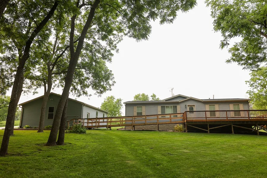 If you're seeking the serenity of country living with the convenience of pavement and proximity to town, this 6.85-acre property just east of Guthrie Center along Highway 44 delivers the best of both worlds. Whether you're dreaming of a hobby farm, extra space for recreation, or simply a peaceful place to call home, this well-kept acreage is a rare opportunity in Guthrie County.Set back from the highway with mature trees and privacy, the 1,350 sq ft manufactured home offers 3 bedrooms and 2 full bathrooms in a comfortable, functional layout. The spacious living room flows into an open dining area and kitchen, creating a welcoming atmosphere for everyday living or entertaining. The kitchen features ample counter space, a central island, and generous cabinetry for storage. A dedicated laundry/mudroom provides additional convenience and leads to the wrap-around deck, perfect for enjoying Io...