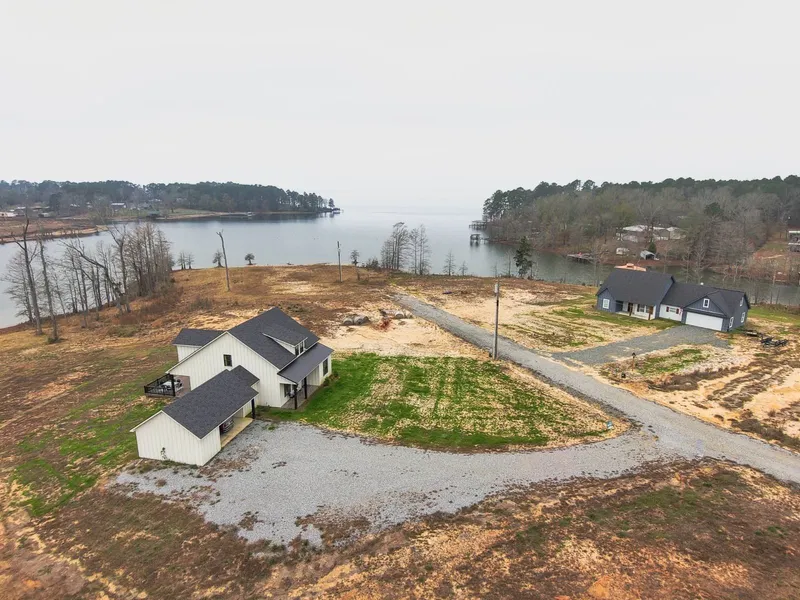 Indulge in the essence of refined lakefront living with the effortless turn of a key. This newly built masterpiece exudes quiet sophistication across its 2,300± sq ft of impeccably curated space, where every detail has been thoughtfully considered and flawlessly executed. From the moment you step inside, that coveted "brand-new home" ambiance surrounds you-crisp, pristine, and meticulously finished from the foundation to the attic. Enhanced with spray-foam insulation, the residence offers exceptional energy efficiency without compromising comfort or style. Beyond the front door, an expansive, light-filled layout unfolds, anchored by an inviting family room with a statement fireplace. The dining area and generous breakfast bar create a seamless flow for both intimate gatherings and effortless entertaining. The kitchen is a showpiece in its own right, elevated by stunning quartz countertops, abundant cabinetry, and extensive counter space that rises to meet the impressive 10' ceilings. A spacious walk-in pantry adds a touch of everyday luxury. A sweeping wall of windows frames mesmerizing water views, bathing the interior in natural light and infusing the home with warmth and tranquility. The oversized 28x20 carport, complete with a 20x8 storage room, offers versatile space ideal for a workshop, lake gear, or lawn essentials. With two bedrooms on the main level and two additional bedrooms upstairs, the home provides generous accommodations for family and guests seeking comfort and relaxation. Step onto the covered back porch and continue to the expansive 22x20 wooden deck-an outdoor sanctuary designed for hosting unforgettable gatherings or savoring peaceful mornings with coffee in hand as nature unfolds around you. Just beyond, a thoughtfully designed outdoor shower awaits-perfect for rinsing off after a day on the lake, embracing the breeze, or simply enjoying the rustic charm of open-air refreshment. Perched on a 0.0767± acre lot, the property boasts sweeping, unobstructed views that stretch gracefully across the lake and into Texas, creating a breathtaking backdrop for everyday living.
