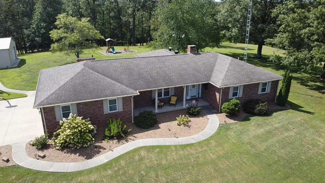 Words can hardly do justice to this remarkable home. An elegant foyer welcomes you into an all-brick home where rich flooring and refined finishes set a tone of timeless sophistication. The kitchen is a showpiece, appointed with handcrafted Amish cabinetry and sleek stainless steel appliances. Offering 3 bedrooms, 2 full baths, and a full walkout basement, the residence is as functional as it is beautiful. Additional 2 impressive pole barns provide space for vehicles, hobbies, or a workshop, while a shelter house invites outdoor entertaining. Nestled within breathtaking woods highlighted by a rare wild mistletoe tree this property is a true hidden gem.