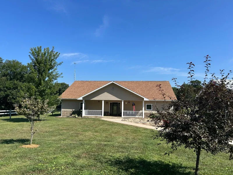 REDUCED! Built in 2016! Immaculate 2 Bedroom, 2.5 Bath Ranch on 1 Acre with Country Views! Built in 2016, this beautifully maintained home features an open-concept design with 9-foot ceilings and offers 2 bedrooms, each with private ensuite Full Bathroom! The attached garage could be converted into a 3rd Bedroom! The kitchen features solid wood cabinetry and a ceramic tile floor, opening to a spacious dining area and living room. A 12-foot sliding patio door leads to a deck topped with a pergola perfect for enjoying the private country views at the quiet edge of the village. The Laundry Room is just off the kitchen with a half bath. The property includes an attached one-car garage plus two additional garages-ideal for extra parking, home office, workshop, or storage. Recent updates include a new roof (2024) on the house and a detached garage, a newer water heater (2023). The mechanical room is easily accessed down a flight of stairs and has a Bix waterproofing system. Additional features include a 200-amp electrical service and a PEX water system. This property is conveniently situated only 11 miles to Rushville or 19 miles to Macomb!. Detached garages-34 ft. by 26 ft. and 24 ft by 27 ft. PIN 03-16-478-002