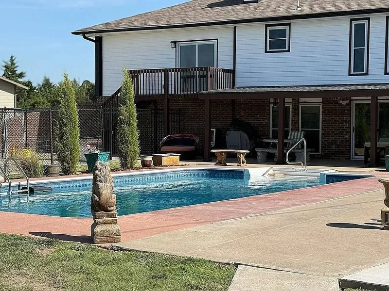 Experience peaceful country living just minutes from town with this well-maintained ranch-style home situated on 1.6 acres. Built in 1983, this residence features a classic brick exterior complemented by new smart siding, fresh exterior paint, and recently installed roofs, gutters, and screens for low-maintenance ownership. The property offers scenic views of Fossil Lake and a quiet rural setting. This spacious 3,370 sq ft home includes a fully finished walk-out basement and fresh interior paint throughout. The layout provides flexibility with 5 bedrooms (one non-conforming), including a primary suite, and 3 full bathrooms. Large front windows provide abundant natural light in the main living area, and a fireplace adds comfort and charm. The home is currently on well water with access to nearby rural water districts. Exterior amenities include a newly stained and stamped concrete front porch, a 20x40 underground saltwater pool, and a finished interior pool house with an adjoining patio-ideal for outdoor entertaining. Additional improvements include an attached oversized 2-car garage with openers and workbench, a 28x40 detached shop, and a 10x20 detached garage offering extra storage or workspace. A generator disconnect is installed for added safety and reliability. This property provides space, privacy, and versatility for a variety of needs, whether as a first home or a long-term residence. Natural surroundings and a peaceful setting enhance the overall appeal. Explore the virtual tour online through the link provided, or contact Desiree directly to arrange a private showing.