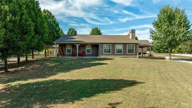 Seasonal Water View Home at Grand Lake. Beautiful 3-bedroom, 2-bath home with a wide-open floor plan and vaulted ceilings. Wood burning fireplace sits between great room and kitchen so it is always visible no matter what room you are sitting in ! Solid-surface flooring throughout makes for easy living, while the cook’s kitchen features a center island perfect for entertaining. The dining area sits at the end of the kitchen and enters the patio through glass doors. The seller built an oversized two-car garage that offers a convenient drive-through design—ideal for boats, ATVs, or other lake toys. The property also has two outdoor buildings, one a storage shed and the other a bunk room set up for overflow guests complete with heat and air. For added peace of mind the property has an inground storm shelter right out the back of the garage. Nestled high at the back of Dogwood Hollow and ba...