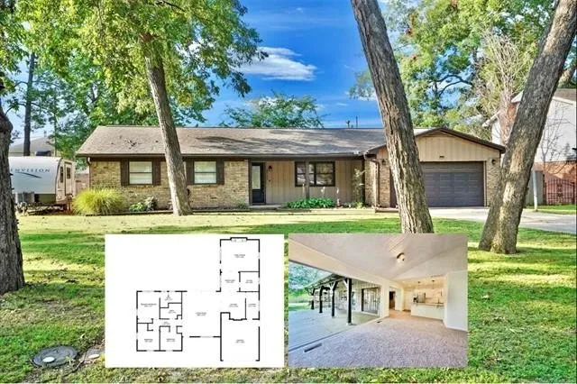 Welcome home to this charming full brick, single-story Ranch-style home is on almost a half-acre lot. You'll love the front porch and back patio, and it's on an end street with walking trails right there! Plus it's very close proximity to shopping and some great restaurants, one restaurant at the other end of the street! Highlights include a newer roof, brand-new carpeting throughout, and fresh interior paint throughout much of the home. The kitchen has beautiful granite countertops and stainless steel appliances, with the added bonus of a refrigerator that stays! Step out onto the large and amazing deck off the patio, perfect for relaxation and entertaining. Enjoy large stunning floor-to-ceiling windows in the front living room, which invite abundant natural light and seamlessly blend indoor and outdoor spaces. You absolutely have to see this to enjoy it! The cozy den features a firep...