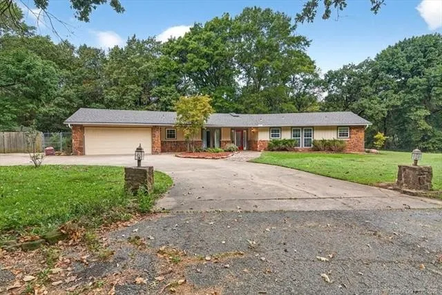 This charming property features 3 full baths, fresh interior paint, updated kitchen, new flooring, and new roof. In a beautiful wooded setting, this home offers both comfort and space. With 2.5 acres of land it's ideal opportunity for a farmer or rancher or anyone who wants room to enjoy the outdoors. Minutes from Broken Arrows growing Rose District and highway access. Don't miss this one. Schedule showing to day!
