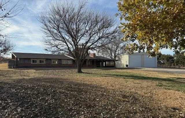 Unique Custom 5 bed 2 bath home exudes character and a newly built 34 x 50 garage \ shed situated on 4.53 acres +\- Discover a remarkable custom home that radiates character, complemented by a newly constructed 34 x 50 garage\shed situated on approximately 4.53 acres. This sprawling earth-contact home offers excellent climate control and is conveniently located about 2.6 miles south of Larned, KS, with easy access from K 19 Hwy South. The spacious driveway from the highway frontage road and a generous front lawn warmly welcome you to the property. The stunning rustic design features an east-facing front porch, perfect for relaxation while you savor breathtaking Kansas sunrises. Experience comfortable one-level living with a spacious open-concept layout connecting the living room, dining room, and kitchen: A step-down large living area showcases updated carpeting and offers the option of a wood-burning fireplace, vaulted ceilings, and rustic walls, allowing for a smooth transition to the kitchen and dining area. The expansive kitchen is adorned with beautiful slate flooring, modern cabinetry, granite countertops, and a large center island. Kitchen appliances are included with the property. A sizable dining area is conveniently located between the kitchen and living space. A spacious hallway leads to two bedrooms, along with access to a bonus room, available for mudroom, office, or playroom—endless possibilities await!! The south hallway connects to three additional bedrooms, including a primary bedroom with a generous walk-in closet. The home features full bathrooms and a washer and dryer area conveniently situated in the center. A large mechanical storage closet completes the interior. Additional Amenities, this property boasts numerous updates and amenities, including: A new roof installed in November 2025, Central heating and air conditioning, R\O water filtration system, water softener, updated windows and flooring, An upgraded septic system, A Generac generator Newly updated concrete, Step outside to explore approximately 4.53 acres of expansive outdoor space. Enjoy the serene terraced backyard, complete with a tree\porch swing that offers stunning views of the west rolling landscape, Kansas wildlife, and breathtaking sunsets. The property also features a large 34 x 50 insulated garage\shop with 14-foot doors, electricity, 50 amp elec for motorhome and concrete flooring (built in 2021), along with a garden shed providing space for your gardening endeavors. This property presents incredible opportunities for country living while maintaining easy access to town. Don't miss your chance to embrace a peaceful country lifestyle!!!