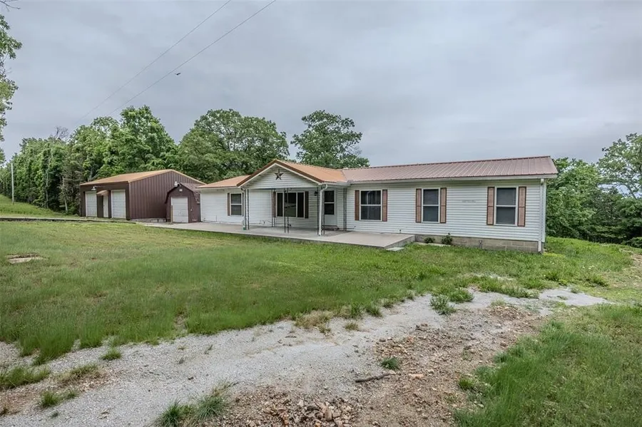 Looking for new spot in the country to call home? Well look no further! This well-kept 3 bedroom, 2 bath home has plenty to offer! You will love the open concept of the kitchen, eating/sitting area and living room. Split bedroom layout with the primary suite on one side, two additional bedrooms with full bath on the other with the spacious living room, dining area, separate formal dining area or office. Updates include 2017-2018 all new subfloor, flooring, water heater, water softener, HVAC, light fixtures, cabinet(s) in kitchen and bathroom, kitchen sink, faucets, and toilets. In 2019-2020 new detached garage, metal roof on home and additional concrete on front porch. Brand New Well 2025. Detached garage is 24x32, additional storage shed 14x24 with concrete floor and a little outhouse for additional storage. This property is located just 10 minutes from Pomme De Tere Lake and 35 miles of Lake of the Ozarks.
