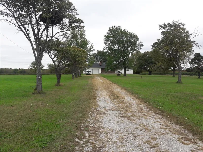 157 Acres m/l South of Louisburg with Ranch style Home! Brick & Vinyl sided Ranch is 1240 Sq. ft. Needs updating but seems to be a solid house! 3 Bedroom~2 Bath, Pretty Brick Fireplace w/Wood stove insert. New Roof! Ground Source Heatpump. Full unfinished basement! 2 Car Garage! Thermal Windows! Rural Water Meter. Lot's of possibilities with this beautiful property! Outbuilding 1728 sq.ft. per County plus an old shed. Tons of Mature Trees & crop ground. Home/Property/Estate to be sold in it's present condition! Seller hasn't lived in the property for over 30 years, Disclosure filled out to the best of his knowledge!