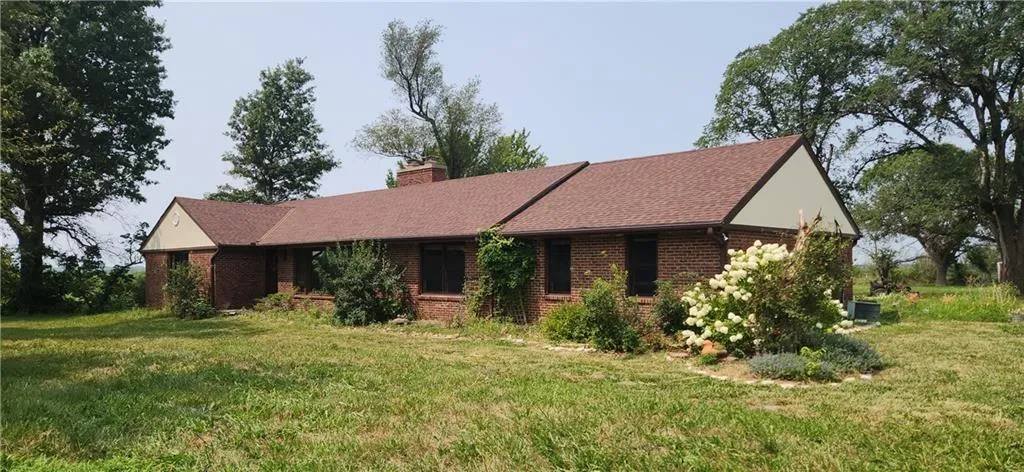 Great location just South of Louisburg! Located on BLACKTOP! One of the prettiest 20's in Louisburg! Great hilltop location, you can see for miles! Beautiful tree lined Driveway! 3000+ sq. ft. Brick Ranch! 4 Bedroom-3 Bath! Huge Family Room w/ tile floor & Cool ceiling and another Living Room. Big Kitchen w/large Eating area and lots of pantry space. Primary Bedroom w/Bath and Walk in closet. All of the bedrooms are nice size! Partial Basement. Septic pumped and inspected 7/19. All Good. 10 Year old Roof. 2 Car attached Garage. 2 Car detached Garage/Shop. Fenced. Big Barn with 10 stalls & Hay storage. (4,352 sq. ft.). Hay Ground. Farmer will retain the hay for this upcoming season. Cattle will be removed by closing date. *See Supplements.* AC is broke, seller will have the main unit replaced and offer a credit at closing for the other unit. **Inspections are welcome & the home will be sold in it's present condition-seller to make no additional repairs.