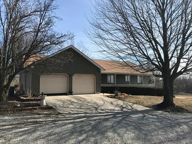 Everyone's dream!! Ranch with walkout on 9+ acres, w/pond, on blacktop! This 3 bedroom/2 bath with full, partially-finished basement has much to offer! Larger kitchen dining room combo with plenty of cabinets, huge master bedroom, newer roof, newer HVAC, newer siding with maintenance free soffits. Partial finished basement with walkout to basketball court! Enjoy sunsets from the covered front porch, or evenings by pond with pebble beach, ducks, and walking trails. All close-in, only 30 minutes to south KC or OP!