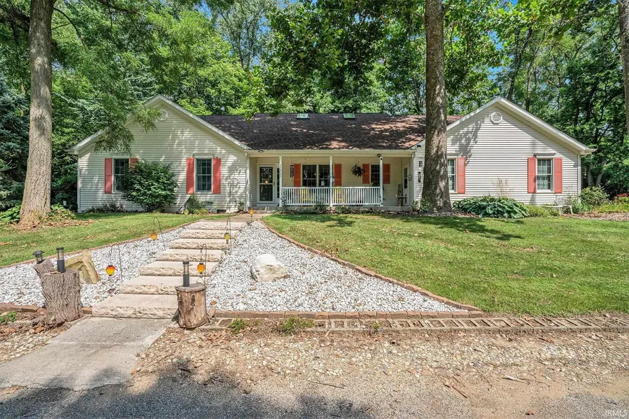 Hidden Gem on the Elkhart River!! Nearly 3 Acres in Concord Schools! Discover a rare opportunity to own a stunning 3 bedroom, 3 bath home nestled on nearly 3 park-like acres in the heart of Elkhart. With river frontage, city water and sewer, and Concord Schools, this property combines privacy, convenience, and comfort all in one. Inside, you’ll find a spacious custom kitchen with quartz countertops, double convection oven, newer appliances, walk-in pantry, and new flooring. The living area includes Cathedral ceilings, crown molding, and an open floor plan. You will love the spacious owner’s suite, Main floor laundry, hand scraped hickory flooring, central vacuum, and a 4-ft crawl space for easy access and storage! Step outside and enjoy the covered porch perfect for relaxing and entertaining or the back patio with beautiful landscape. For all your storage needs enjoy a 3 car garage, a 30x48 insulated pole barn with 14-ft overhead door for RV storage and a12x24 storage shed! Invite your friends to enjoy the privacy with a weekend of camping! This property is set up with five separate electrical RV hook-ups with updated electrical. Home has an irrigation system fed by the river. Enjoy relaxing by the new pond! Other updates include new stone steps leading to the house and new walkway enhancing the natural landscape, brand new roof with lifetime warranty, tankless water heater, whole-house generator, quartz countertops, garbage disposal, appliances, electrical for RV hook-ups, and more—making this home move-in ready and worry-free!