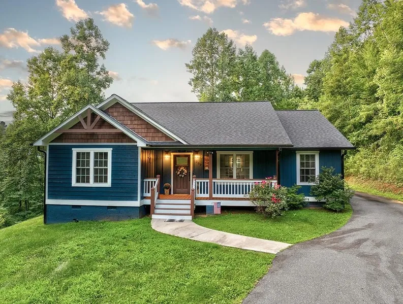 Where year round views can be savored from the covered front or back porch. Vaulted ceilings with recessed lighting bring an airy sophistication, while hand-scraped wide plank flooring flows throughout the home. The open-concept living area create the perfect space for entertaining, highlighted by thoughtful finishes that elevate every detail. Relax with your favorite beverage while the uninterrupted mountain views ease away the day's stresses—whether you're inside or on the beautifully crafted covered porch. This quiet mountain getaway offers modern conveniences with reliable internet, cell service, and year-round accessibility via paved roads. Special Features & Updates: Exterior EV wall charger UV water filtration system with sediment filter Detached carport/shed Very private setting on nearly 4 acres, yet just 5 minutes from downtown Sylva Fresh exterior paint (2024) Accessib...