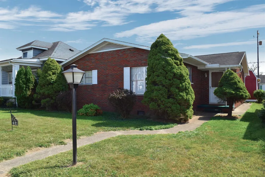 This charming and well-maintained 3 Bed, 1 1/2 bath brick rancher is conveniently located close to all amenities and features large, spacious rooms throughout. The kitchen/dining room area is equipped with solid wood cabinets and a peninsula island for extra seating. The primary bedroom has abundant room with hardwood floors and a half bath. In the hallway, you will find a walk-in closet perfect for storing seasonal items and clothing. At the back of the house, there is a dedicated work shop area with garage-door access and a detached storage building. The property has parking for 3 cars under the carports accessed from the alley.