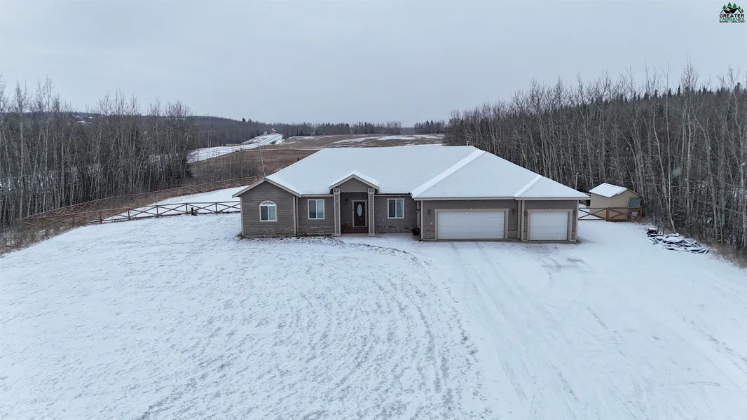 Welcome home to this stunning 5-Star Plus energy-rated ranch-style home—where comfort, efficiency, and Alaskan living come together! Perfectly located near town, schools, and Fort Greely, this beautiful property backs up to an open field, giving you extra privacy and the feel of a larger lot. Inside, you’ll love the open floor plan with 9-foot ceilings and a tray ceiling in the living room. The kitchen is a showstopper with granite countertops, custom cabinetry, a pantry, and a smooth connection to the dining and living areas. A cozy wood stove adds warmth and charm as a second heat source. The home features 3 bedrooms plus an office that can easily serve as a 4th bedroom, and 2 full bathrooms. The spacious master suite offers a walk-in closet, corner jetted tub, tiled shower, private toilet room, and a double vanity with a makeup area. The main bathroom also includes a double vanity for extra convenience. Step outside to a fully fenced backyard with both a covered and open deck—perfect for BBQs, pets, and Alaska summer evenings! Additional features include a storage shed, separate laundry room, and a welcoming front entry with dual closets. This home truly has it all—modern upgrades, energy efficiency, and an ideal location. Don’t miss the chance to make it yours!