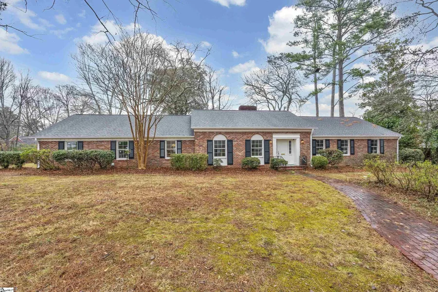 Completely renovated traditional brick ranch, stately positioned on a desirable corner lot just minutes from Downtown Easley. This home exemplifies refined one-level living, offering both elegance and functionality with formal dining and living rooms, a sunroom, den, breakfast area, and a slate foyer. The residence features three bedrooms and two-and-a-half baths and has been thoughtfully updated inside and out. Major improvements include all-new electrical and plumbing, a new roof, HVAC system, windows, and a tankless water heater, providing peace of mind and modern efficiency. Elevated selections throughout showcase the home’s timeless appeal, including real hardwood floors, a neutral color palette, stylish wallpaper, curated light fixtures, custom built-in bookcases, and beautifully tiled bathrooms. Additional highlights include a walk-up floored attic and a 538 square foot partially finished basement with fireplace, offering endless possibilities for additional living, recreation, or storage space. Set on a spacious .89-acre lot, the outdoor setting features a brick patio, circular driveway, mature trees, and ample room for privacy and future transformation. A two-car carport with heated and cooled storage completes the home’s thoughtful design and everyday convenience. Ideally located just minutes from Highway 123, shopping, dining, and Downtown Easley, with easy access to Clemson University and Downtown Greenville, this home offers a rare blend of traditional luxury, extensive updates, and prime location. **Total square footage of the home is approximately 3482. Finished first floor is 2944 square feet and partially finished basement is 538 square feet.**