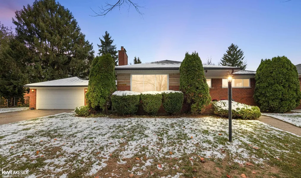 Welcome home to this beautifully renovated brick ranch, perfectly situated on an oversized lot with a spacious three-car garage. Step inside to a brand-new kitchen featuring white shaker cabinets, granite countertops, stainless steel appliances, and a classic white subway-tile backsplash. Stunning LVP flooring flows throughout the home, leading you into a cozy living room complete with a charming fireplace—ideal for cold evenings. Enjoy entertaining on the covered patio during warmer months, or take advantage of the finished basement that offers endless possibilities along with an additional half bathroom. Conveniently located near I-94 and I-696, this home provides easy access for commuting and travel.