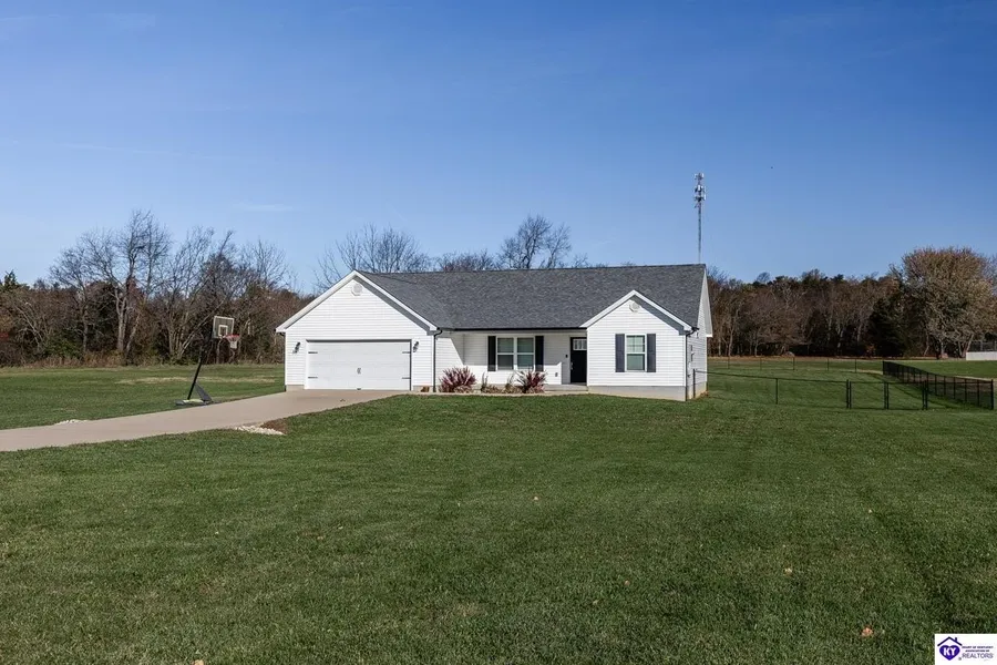 Welcome home to this charming 3 bedroom/2 bath ranch that feels like new construction. Perfectly located near all that Elizabethtown has to offer and an easy commute to Fort Knox, this property combines comfort, convenience, and modern style. Inside, the open floor plan features beautiful flooring, high ceilings, and an abundance of natural light. The kitchen stands out with gorgeous cabinetry, granite countertops, a custom island, and plenty of space for cooking and gathering. The split-bedroom design provides privacy, and the spacious primary suite includes double closets and a luxurious bathroom with a dual vanity. A large laundry room with pantry storage, two additional bedrooms, and another full bath complete the layout. Step out back to enjoy the patio and a huge backyard, perfect for relaxing, entertaining, or play. Sitting on more than an acre, this property offers the ideal balance of privacy and open space. Take the 3D virtual tour and schedule your private showing today!