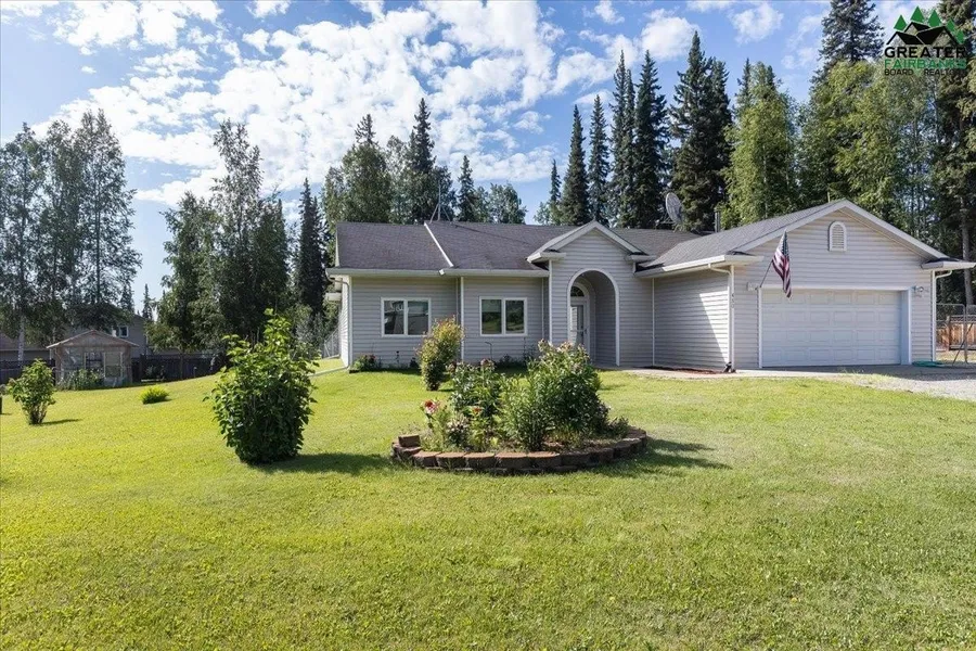 Welcome to 480 Kentshire Drive—a rare gem in one of Fairbanks’ most desirable neighborhoods. This well-maintained 3-bedroom, 2-bath ranch-style home offers the perfect combination of comfort, function, and curb appeal, all set on a beautifully manicured lot bursting with mature trees, perennial flowers, and a fully fenced backyard. Whether you're looking for peaceful living or easy access to town, this home delivers on both. Step inside to find a bright and inviting open layout enhanced by French doors, arched entryways, and plenty of natural light throughout the living space. Fresh paint, brand-new carpet, durable tile flooring, and thoughtfully designed built-ins create a crisp, move-in-ready space that feels both stylish and functional. The spacious primary suite includes a walk-in closet and an en-suite bathroom, creating a private retreat you’ll love coming home to. Designed for both everyday comfort and Alaska living, this home also boasts a gravel driveway with ample space for RV parking, plus a greenhouse and storage shed for all your gardening and seasonal needs. The deck and patio area are perfect for outdoor entertaining, while the 5-Star Energy Rating adds long-term efficiency and peace of mind. Enjoy the flexibility of city water plus a private well, giving you added utility options. Turn-key and move-in ready, 480 Kentshire Drive is a unique opportunity to own a thoughtfully cared-for home in a quiet, established neighborhood. Homes here rarely hit the market—don’t miss your chance to make this one yours. Schedule your private showing today! All offers will be considered.